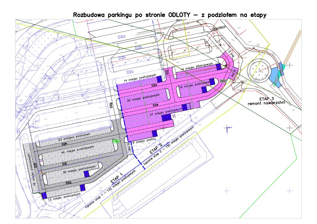 z infrastrukturą techniczną. Nowe parkingi powstaną po stronie odlotów z lotniska.